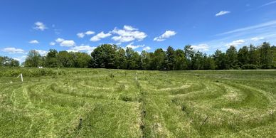 We have two lifetimes spent working the land wherever we live, restoring the landscape, and improving the soil health with native and non-invasive plant species. As we have always done, Sweetgrass Hollow uses sustainable land management practices. We have poured our experience and passion into the labyrinth built in 2023, as well as our surrounding land. Our mission of restoring the land and helping others find their peace continues.